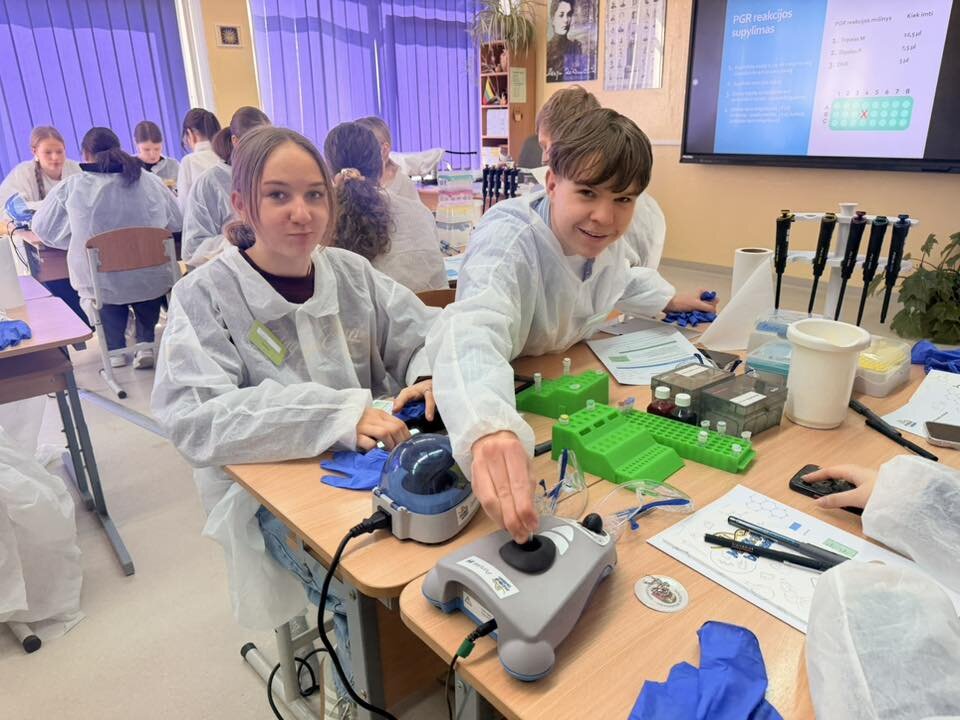 Keturias valandas trunkantis projektas leidžia pasijausti tikru tyrėju profesionalioje laboratorijoje. Išmokstama dirbti moderniomis fiksuoto tūrio pipetėmis, skaičiuoti ir pilstyti tirpalus mikrolitrų ribose. Prietaisų įvairovė – purtyklės, centrifugos, termocikleris, DNR elektroforezės aparatas formuoja universitetinio lygio gebėjimus.